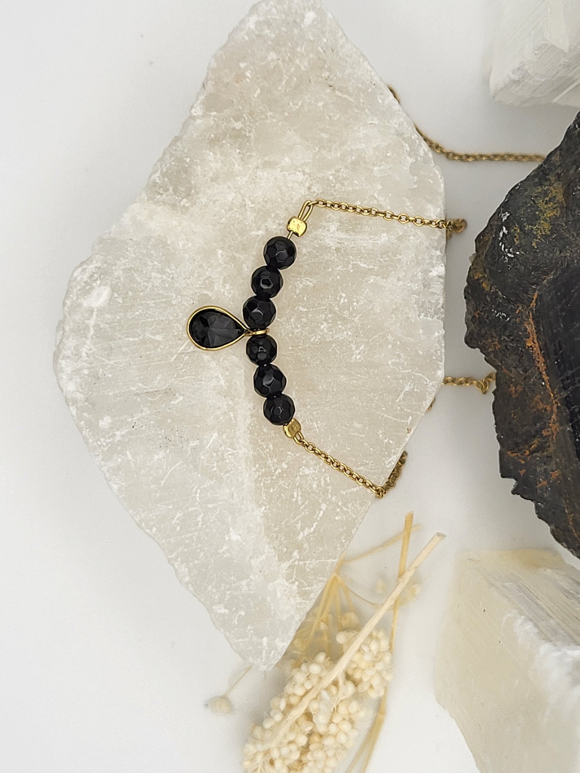 Die „Good Vibes Only“ Kette wurde mit Liebe handgefertigt aus 925er Sterlingsilber mit 18K Vergoldung und echten, die dich jeden Tag an Ruhe, Stärke und Licht erinnern.